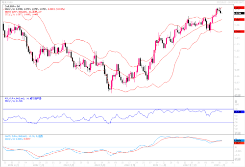 周二(1月17日),欧元兑美元下跌0.3%,至1.0789美元。彭博新闻报导,据了解欧洲央行政策制定者讨论情况的官员说,他们开始考虑以比总裁拉加德去年12月表示的更慢的速度加息。这些官员表示,尽管拉加德在2月份暗示的加息50个基点仍有可能,但在3月份的下次会议上小幅加息25个基点的前景正在获得支持。消息虽未经证实,但当日对欧元造成压制。小时以及4小时短线图上,欧元兑美元回落短期均线下方,显示一定的回调压力,下方初步支撑继续留意1.0760-1.0720这些区域。若欧元兑美元能坚守该区域之上,则后市仍有望延续其反弹之旅。否则的话,回调深度将会加大。