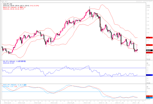 周三(1月17日)日元兑所有货币均有下跌,美元兑日元当日升0.61%报收于128.91。在为期两天的政策会议上,周三日本央行投票一致决定维持其YCC目标不变,维持短期利率目标在负0.1%,维持10年期公债收益率目标在近零水准。央行也没有改变其允许10年期公债收益率在0%目标上下波动不超过50个基点的指引。这令一些希望该央行进一步放松收益率曲线控制(YCC)政策的投资者感到失望。尽管如此,日本央行的预测预期通胀将上升,这在很大程度上不会扭转投资者押注日本央行将被迫调整,甚至取消YCC,因为他们认为央行为守住上限而进行的大规模购债操作将难以为继,日本央行将不得不进一步收紧货币政策。从昨日的走势可看出,日央行宣布决定后,美元兑日元一度蹭高至131.57,但随后的逢高空头盘积极涌入,将报价迅速压低回130之下。可见,日元多头盘目前相当坚韧。从周线和月线大周期图表上观察,美元兑日元仍处在价值回归途中,但斜率显得过大,应提放近期有可能进入横盘整理交易阶段,波动区间估计落在127-132之间。若127跌穿,下方目标瞄向125。