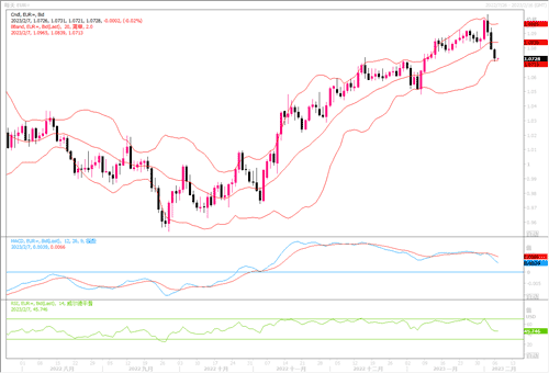 周一(2月6日),欧元兑美元下滑0.6%,盘中最低至1.0709,为1月9日以来最低。上周强劲的美国就业报告提高了美联储在更长时间内继续加息以对抗通胀的可能性,美元从而得以提振而欧元则受压下行。但是鉴于上周在加息举动上,欧央行令人意外地大幅度于美联储进行加息50个基点,帮助欧元缩窄了与美元的息差,这在相当程度上还是能限制住欧元的大幅走软态势。短线来看欧元兑美元还处于受非农数据影响下行调整之中,汇价有可能继续测试1.07的支撑,若跌破,下方强硬的支撑分别在1.0615和1.05水平。而上方只有突破1.0890,方可表明下行风险得以减弱或扭转。