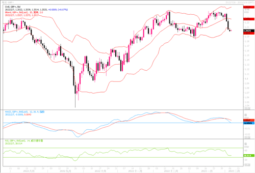 周一(2月6日)英镑兑美元继续下跌0.2%,盘中最低曾至1.2006,创下一个月以来的新低。英镑走软影响因素还是上周美国强劲非农数据施压所致。目前交易员等待英国经济增长数据和英国央行决策者关于加息步伐的发言,以获得有关英镑前景的线索。英国央行上周对于通胀出现拐点的论调,被投资者认为央行的货币政策利率已接近峰值,英镑为此深受拖累。从日线以及小时图上观察,英镑兑美元延续着下跌的势头,但走软的步伐似乎开始有所缓和。目前下方1.20整数关口的支撑较为关键,若跌破下方1.1950支撑力较微弱,更关键的强支撑在1.1845。而英镑兑美元能否扭转颓势,则要看能不能重新向上冲破1.22阻力水平。