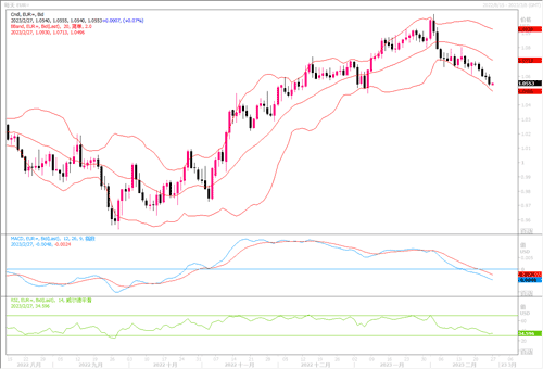 高于预期的数据帮助美元上周兑许多主要货币攀升。美元指数上周五维持上涨0.6%,报105.20,为七周最高,周线有望录得9月底以来的最大涨幅,而欧元兑美元则创下9月底以来的最大周线跌幅,上周五低收盘于1.0545。上周五,美国公布的经济数据仍旧保持强劲,其中个人消费支出(PCE)物价指数在1月上涨0.6%,为2022年6月以来的最大涨幅,12月上涨0.2%。在截至1月的12个月中,PCE物价指数急升5.4%,12月为上涨5.3%。这是美联储青睐的通胀指标。美国商务部的数据显示,占美国经济活动三分之二以上的消费者支出在1月猛增1.8%,这是2021年3月以来的最大增幅。此外,1月美国新屋销售增加7.2%,为2022年3月以来的最高水平。12月销量从61.6万户上修至62.5万户。强劲的美国数据在2月份完全扭转了市场。利率资产和股票遭到抛售,美元上涨。美国经济似乎正在重新加速,迫使美联储进一步加息,而市场原本希望美联储尽早转向似乎也落空了。美元利率继续在主要经济体中领跑,造成虽经济也开始表现不俗的欧元区货币欧元遭到压制转而持续下行中。日线以及周线图上,欧元兑美元渐渐远离短期均线下方,暂时看到不到扭转跌势的信号,欧元仍旧受空头的控制较为明显。