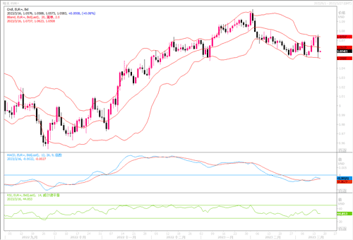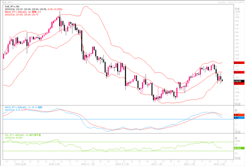 周三(3月15日)美元兑日元下跌0.59%报133.42,盘中最低曾低至132.21水平。日元的继续走升有两方面的原因:一是瑞银事件导致有大量资金流入高质量避险资产,二是重新消化加息预期。在利率市场上,联邦基金期货大幅下跌,这种期货反映银行用于相互借贷的隔夜利率。12月合约从一周前的约5%跌至3.767%,暗示潜在降息时间为6月。与利率预期同步变动的两年期美债收益率下跌26.1个基点,至3.964%。芝商所(CME)的FedWatch工具显示,根据期货定价,美联储在3月21-22日的政策会议上不加息的可能性为60.1%。有首席经济学家在一份报告中表示:由于地区银行在美国信贷扩展中发挥着关键作用,美联储下周不会加息,我们可能已经看到了本周期内短期和长期利率的峰值。美元利率峰值押注的降低,无疑是给到了日元极大的利好,息差方面的压力将渐渐有可能得到解除。日线图上,美元兑日元再度回落到20日均线下方,MACD死叉朝下延伸,显示美元兑日元转而下行的势头增强。若近期的强支撑区域133-132彻底失守,则美元兑日元恐会走出明显的下行趋势。