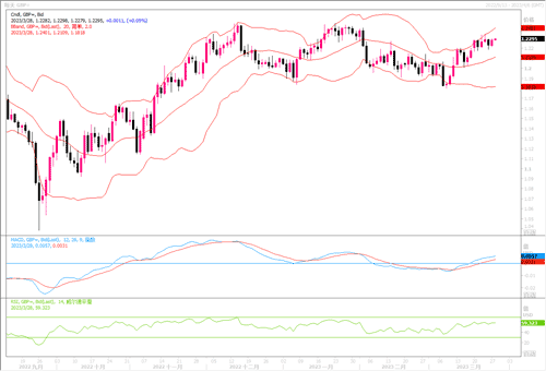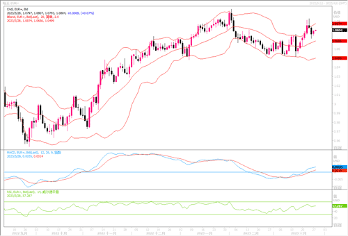周一(3月27日)欧元上涨0.3%,报1.0799美元。当局努力抑制对全球银行系统的担忧,缓解投资者的紧张情绪。因此周一当日,欧洲银行股指数。SX7P上涨1.43%,其中德意志银行在上周五大跌8.5%后跳涨6.15%。于此同时,周一的数据显示,尽管银行业出现动荡,但德国3月份的企业信心却意外提高,一定程度上稳住了欧元的下滑。由于本周大事件不多,外汇市场交易区间料会显得狭窄。日线图上,欧元兑美元继续保持在20日均线上方,技术指标业略保持均衡线上方,欧元兑美元暂时仍能保持突破前期横盘区间上沿1.0750水平之上。若在上述水平之上筑牢,后市上行攀向更高水位可期。