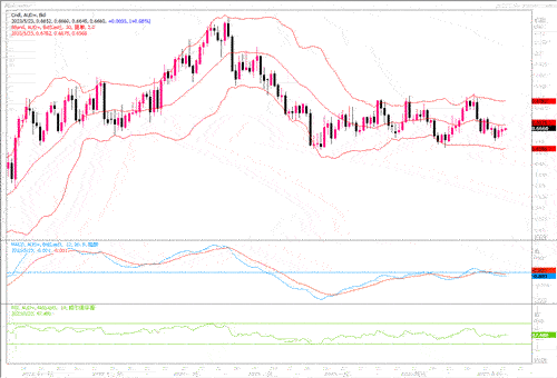 周一(5月22日)澳元兑美元几近持平于0.6653水平。上周五上涨0.4%,最高至0.6675美元。不过,澳元离2023年低点0.6573美元也并不远,并在21日移动均线0.6675美元处面临阻力。投资者正在等待着美国总统拜登和众议院议长共和党人麦卡锡周一讨论债务上限的关键会议,此前谈判在周五陷入僵局。许多汇率分析师表示,预计这场边缘政策将持续到6月初财政部资金耗尽的“最后截止日”。市场对美联邦债务上限问题的态度,由此前的乐观转向了谨慎。因此,澳元这些风险货币,目前的走势也是颇显窄幅。澳元/美元近期波动区间主要集中在0.6630-0.6680之间。