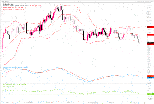 周三(5月24日)澳元兑美元继续大幅跌1.01%,至0.6543收盘,为一个月来的最低。虽然新西兰央行周三宣布升息25个基点,但会后该国央行发表了一份偏鸽派的加息声明,暗示加息基本上已经完成。这表明紧缩周期行将结束。与此同时,市场已开始预期明年下半年将有降息,而且在经济衰退和紧缩周期结束的情况下,市场会希望宽松政策比央行暗示来得更早。新西兰央行的举动波及澳元,目前澳美利差的利空作用在扩大,此外中国经济增长令人失望也对澳元产生打击作用。日线图上,澳元/美元已跌穿前期两个多月以来横盘的底沿0.6590支撑水平,若短线回抽仍受压于上述水平之下,则要防范澳元兑美元进一步往低位下探的风险。下方支撑依次看0.65、0.6470、0.6420。