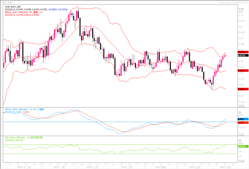 周二(6月13日)在美国公布通胀数据出现低幅增长结果之后,澳元兑美元一度高升至一个月以来的高位0.6807,但尾盘则迅速回落至0.6750水平收盘。周二晚些时候公布的美国通胀报告显示5月消费者通胀出现可喜的降温,整体通胀年率料从4月的4.9%降至4.01%,这一结果将增加美联储暂停加息的理由。数据一度刺激澳元的上升,但后继力显得缺乏,这主要是当天早些时候,澳洲企业和消费者信心调查数据疲软,以及中国下调关键短期利率的举措均令澳元承压。短线4小时图上,澳元兑美元遇阻于0.6810,短线有获利调整压力。日线图上,澳元兑美元暂时还是保持完好的上挺走势。经过短线调整后,若能守护在0.6700之上,则后市继续攀高仍可期待。
