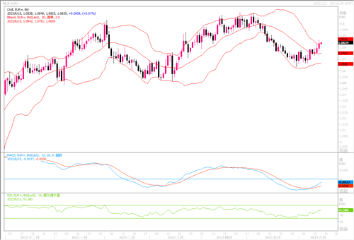周三(6月14日)欧元兑美元缩减涨幅,尾盘报1.0827美元,上涨0.3%,盘中最高曾触及1.0864。周三当天美联储一如预期维持利率不变,但暗示到12月底借款成本将再上升50个基点。会议声明中表示,“在本次会议上保持(利率)目标区间不变,使委员会能够评估更多信息及其对货币政策的影响。” 决策者现预计联邦基金利率今年将达到5.6%的峰值,这意味着在2023年还会有两次25个基点的加息。尽管暗示会进一步加息,但美联储主席鲍威尔在新闻发布会上表示,美联储离指标联邦基金利率目标并不那么远。鲍威尔的观点也得到了周三一份数据的支持,数据显示,美国5月生产者价格下降幅度超过预期,生产者价格指数(PPI)同比增幅是近两年半以来最小。有权威人士认为,美联储会很可能将在当前5.25%利率水平停留一段时间。周四欧洲时段,欧央行利率会议也将登场,普遍预测该行将加息25个基点。在继续加息的加持下,欧元兑美元料能继续获得上行动能。若汇价能冲破60日均线1.0875的压制,上方有望向1.09进发。