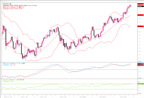 周二(6月27日)日元兑美元下跌0.36%,报144.02,稍早曾触及144.02的11月10日以来最低,投资者关注日本央行可能进行干预,该央行上次干预时,日元兑美元为145左右。此前公布的一系列经济数据显示美国经济仍有韧性,世企研公布6月消费者信心指数从上月的102.5上升至109.7,为2022年1月以来最高。5月新屋销售和4月房价等其他数据也表明,住房市场已经经受住了美联储利率上升的考验。为此,市场现预计美联储将在7月将关键利率提高25个基点。而日本方面,虽然政府以及央行官员纷纷跳出来口头对日元的贬值发表警示,但是在全球各主要经济体为应对顽固的高通胀纷纷走上了快速加息的道路,而日本央行则顽固维持宽松的货币政策,套利交易将不得不驱使投资者离弃日元。日线图上,美元兑日元继续保持在上升轨道中运行,上方须留意145阻力情况以及可能来自日本央行入场干预的风险。若上述阻力水平冲破,前进的目标将瞄向150。下方的依次分别在143、142这些水位。