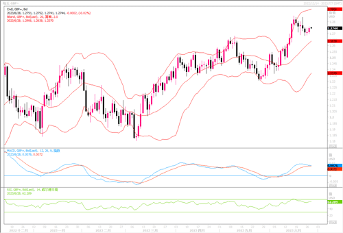 周二(6月27日)欧元兑美元上涨0.49%,至1.0957美元,稍早一度攀升至1.0976美元的6月22日以来最高。拉加德周二表示,欧元区通胀已进入一个新阶段,可能会逗留一段时间。她称,“短期内央行不太可能全然地有信心地说利率已达峰值。”欧洲央行的其他决策者预计,不会有明确的证据表明通胀已经放缓到足以让欧洲央行暂停加息的程度。欧央行众多主要官员对于继续加息的鹰派态度,当日提振欧元反弹上冲。同时间,5月美国资本财新订单意外增加,但4月数据被下修,表明企业对新资本投资仍在一定程度上持谨慎态度,美元出现回落。日线图上,欧元/美元继续顽强守护在1.09水平之上,技术指标MACD仍保持上行态势,未显转弱痕迹,上方若能再度冲破1.10阻力水平,后市有望拓展更进一步的上升空间。日内下方的初步支撑上移至1.0880附近。
