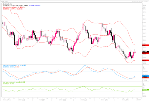 周三(8月30日),澳元兑美元下跌0.09%,收盘在0.6475元,缩减了隔夜因美国就业数据意外下滑压低美元而录得的0.8%涨幅。数据显示,澳洲7月消费者物价指数(CPI)同比增长4.9%,低于上月的5.4%和市场预期的5.2%。核心通胀指标有所上升,但升速放缓,这促使市场加大对澳洲央行已完成加息的押注。利率期货价格已经几乎排除了澳洲央行在下周举行的9月会议上提高目前为4.1%的现金利率的可能性,现在暗示年底前加息的可能性只有36%。通胀急剧下降证实了澳洲央行已经结束了政策紧缩,并提高了该央行比大多数人预期更早开始放松政策的可能性。从上周情况来看,澳元/美元一直坚守0.64水平之上,日线图上的MACD技术指标有形成金叉迹象,RSI也自超卖区域开始拐头向上,显示有筑底反弹倾向。当然了,澳元的走势路径,还要取决于美联储的货币政策及其预期方向。此外,还要考虑其与大宗商品市场和全球经济增长的密切关系。因此影响澳元的因素构成还是比较复杂的。留意本周来自美国的重要数据,若数据不及预期,料澳元或能获机延续反弹的走势。