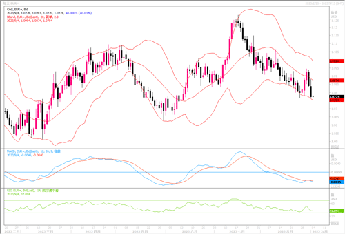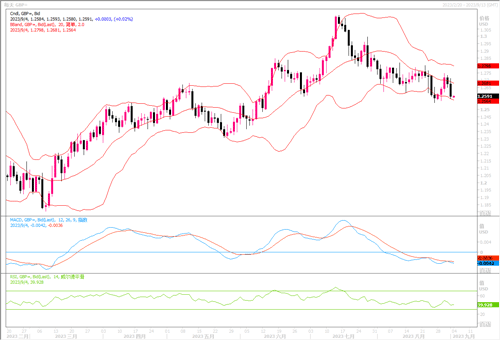 上周五(9月1日),欧元兑美元下跌0.59%,至1.0779,全周下跌0.13%。周五市场极为关注的美国就业报告显示,8月美国新增18.7万个就业岗位,高于预期的17万个。但7月数据下修至增加15.7万个,前值为18.7万个。失业率升至3.8%,高于预期的3.5%。平均时薪同比增长4.3%,低于预期的4.4%。就业报告为投资者展现了两全其美的景象。尽管劳动力市场有趋软迹象,但程度足以让美联储按兵不动,同时又足够强劲,以防止经济陷入衰退。欧洲央行管委暨克罗地亚央行总裁武伊契奇周五表示,经济增长疲软可能会导致欧元区通胀更快下降,但富有韧性的劳动力市场继续推动薪资快速增长,这给物价带来上行风险。货币市场预计欧洲央行在9月会议上维持利率不变的可能性为79%。欧美九月利率会议上维持利率不变的预期率都相当高,在这种场景下,由于美国在控通胀与经济发展的平衡局面比欧洲表现的更完美,美元似乎也得到了相应的支持。日线图上,欧元/美元继续受压于跟期限均线下方,承压下行趋向有所加重。进一步下滑的话,下方探测的水平恐怕会瞄向今年3月份的低点1.0516附近。目前上方1.0950附近构成了较强的阻力所在。