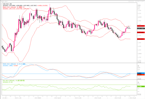 技术层面上,黄金价格在过去四个交易日继续在1934-1949美元区间内徘徊,且稳定在20日和50日移动均线上方,相对强弱指数RSI也徘徊于60附近,显示近期黄金的多头量占优。上方如果能突破100日均线(1953水平附近),则看涨势头能得以继续。而下方1930的支撑较为关键,若回落至该水平之下,则会削弱看涨氛围,继而招致空头入市的兴趣,从而打压黄金低试前期的低点支撑水平。