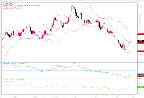 周二(10月10日),欧元兑美元升0.32%,报1.06美元;衡量美元兑其他六种货币的美元指数=USD下滑约0.15%,报105.79,远低于上周创下的11个月高点107.34。亚特兰大联储总裁博斯蒂克最新发表言论表示美联储无需进一步加息。博斯蒂克对美国银行业协会表示,美联储的政策已经具有足够限制性,他还认为未来不会出现衰退,美联储加息会导致经济放缓和通胀下降。这番评论部分是在回应以色列-加沙冲突事件时作出的。中东流血冲突持续不断以及美联储官员的鸽派言论大大拖低了美国公债收益率。周二当天指标10年期公债收益率从周一的高点4.887%跌至4.618%的日内低点。市场上似乎开始充斥着美联储将会停止加息周期的预期。在这种市场氛围下,欧元/美元也是借机继续延续着近期得反弹走势。日线图上,汇价已上穿了布林带通道中轨线,技术指标开始上扬,显示欧元反弹势能在逐渐聚拢。但本周由于有美国通胀数据公布,因此欧元得多头交易预料还会显得谨慎。上方主要留意强阻力水平1.0650的压制情况,如能突破,上行走势有望变得明显。