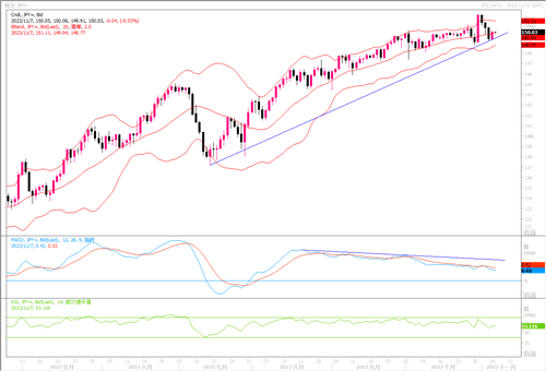 周一(11月6日),美元在空头回补之下有所回升,日内美元兑日元上涨0.41%,收盘在150.07。虽然上周不及预期增长的美国非农数据一度提升美国将终结加息周期的预期,但是市场还是期盼能从美联储主要官员本周的一些讲话中进一步获得能够证实该预期的线索。美联储主席鲍威尔将于本周三和周四发表讲话,他的表态料会引起投资者相当重视。但可以想象的是,预计鲍威尔本周的讲话应也不会透露太多深入的信息,维持其在10月利率会议上的表态将可能是市场能获得的主要内容,那就是美联储需要确确实实看到通胀率回到其核心目标之下,或才考虑利率的最终变动。也即是说美联储仍旧要看年内接下来的各项重要数据的表现而定。市场的下一个主要驱动因素可能是下周的10月份消费者物价通胀数据,消费者物价指数(CPI)将是美联储是否需要再次加息的最佳判定指标。如果公布的数据疲软,那么焦点就会转向明年的宽松程度。相反,公布的数据仍然强劲,那么就令市场很难断定美联储是否还必须敞开进一步加息大门。在这种市场情绪支配下,叠加日本央行在结束宽松货币上动作慎而微,短时间内日元似乎较难获得持续走升的刺激动力。但忌惮于日本央行的防护性干预出现,日元近期也似乎不存在大幅进一步走贬的倾向。日线图上观察到的背驰情景已延续较长时日,就看何时最终得以验证了。