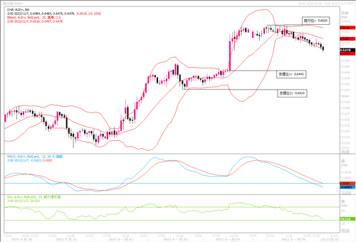 周一(11月6日),澳元/美元下跌0.34%至0.6491,此前曾触及三个月高点0.6523。上周五暴涨之后,澳元/美元本周一开盘后略出现小幅度的获利回吐调整。接下来,市场将聚焦澳联储周二的利率会议。路透调查显示,鉴于通胀出人意料地强劲,澳洲央行会将关键政策利率上调25个基点至4.35%。但考虑到在此之前的四次会议上,澳洲央行一直保持借贷成本稳定,市场则没那么确信。期货市场交易显示澳洲央行本周升息的可能性只为58%。但市场已完全消化2月前加息的预期,甚至认为有可能进一步升息至4.6%。若周二澳联储果真加息25个基点,那么澳元将获得刺激动力向高处进一步反弹上走。相反若澳联储继续按兵不动,澳元反弹势头将遭到削弱,从而进一步提升澳元获利回吐的交易情绪。小时短线走势图上,澳元存在进一步回落调整态势,日内留意澳联储利率会议结果带来的走势影响。