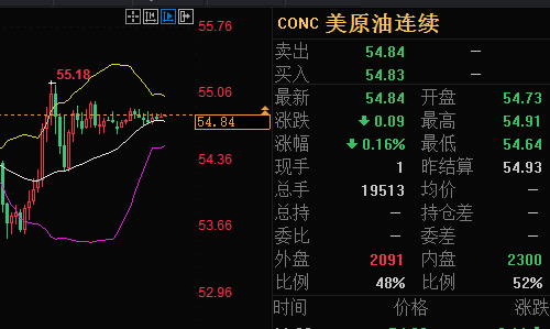 原油:周一原油开盘在54.32美元,白盘油价也是走出一波回落,最低下跌至53.54美元,欧盘阶段油价发力上涨,最高上涨至55.18美元,随后油价再度回踩到54.20美元一线,收盘前再次上涨,最终日线在54.78美元收取一根小阳线。
