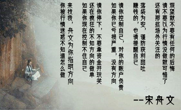 不少人,因为无能为力所以顺其自然,因为心无所属所以随遇而安,你所有的计划都不能坚持,只有两个小原因:震荡的时候想单边,单边的时候想反转。其实,很多人的悲伤,只是希望展示给大家看自己很悲伤,耐心是致胜的关键,信心是成功的保障,强势更强、弱势更弱,交易本是快乐的博弈,而并非含泪咬牙的长征。每一位在读这篇文章的人,感谢与你相遇!简单的一篇文章,希望会帮助你。