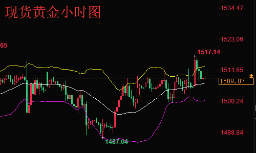 日线来看周二黄金诱空一波之后大幅反弹,收线在1500上方,周三早间开盘黄金最低回落1503附近之后就开始拉升反弹,最高反弹1511附近承压,欧盘最低回落1499附近企稳再次反弹,晚间黄金企稳之后再次站稳1500上方上涨,目前从4小时来看黄金多次试探1499再次不破反弹,后半夜手受贸易谈判消息刺激黄金直接击破1510关口,日线收取大阳线,目前从1小时来看布林带开口向上,价格突破布林带上轨,MACD指标也形成金叉,布林带开口,价格冲破布林带上轨向上延伸短线很强势。综合来看,今日短线操作思路上陈文龙个人建议以回调做多为主,反弹高空为辅,上方短期重点关注1518-1520一线阻力,下方短期重点关注1500-1502一线支撑。