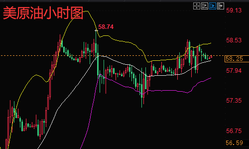 原油:原油昨日又走了探底回升的行情,日线方面录得小阴十字星,其它各周期均线呈多方排列,周线级别还是收口中,短周期指标上行势能明显没有此前那么强烈,目前原油维持在高位高位震荡。原油从4小时线来看,K线位于布林带上轨震荡走势,布林带开口呈现出喇叭口收口趋势,不难看出上周尾盘破位上涨之后,油价打破原有的震荡区间,来到一个新的区间内。当前,初步确认了下方57.2附近支撑的有效性,而行情能否续涨的关键,就在于企稳58关口之后,有没有新的快速拉伸走势。原油从小时线来看,预计行情在58附近或许有反复的情况,企稳之后,上周高点文龙不认为具备阻力效果,MACD下破零轴之后开始缓慢上扬,后市配合K线的指引,预计破位上涨的概率较大。综合来看,今日短线操作思路上陈文龙个人建议以回调做多为主,反弹高空为辅,上方短期重点关注58.8-59.3一线阻力,下方短期重点关注57.5-57.0一线支撑。