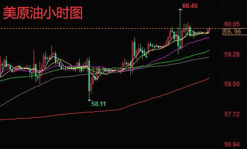 原油从日线来看,上周五原油收线长上影线小阳线,最高突破60.45,突破前交易日新高,但是只是试探性突破,并没有企稳,很快回落。这也很符合文龙的预期,大趋势原油一直是震荡上行。原油四小时线来看,布林带开口张开,原油运行在布林带中轨上方,同时在MA30日均线上方,MACD红色能量柱减弱,油价显示在零轴上方,KDJ来看,KD指标在趋势向下,RSI在70附近。技术面来分析,油价目前处于高位,各项指标显示短线有回调趋势,但如果消息面继续利好原油,那么长线趋势上,文龙认为油价依然看好震荡上涨趋势,上方能否突破企稳60大关是关键。原油小时线来看,今日开盘,油价一直运行在MA10日均线附近。白盘依旧操作空间很小,重点关注晚间美盘。综合来看,今日晚间短线操作思路上陈文龙个人建议以回调做多为主,反弹高空为辅,上方短期重点关注60.5-61.0一线阻力,下方短期重点关注59.3-58.8一线支撑。