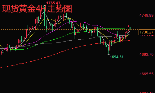 黄金技术面分析:从日线上来看,黄金日线收盘阴线十字星,高点没有破前高,低点下破前低,触底出现反弹,均线空头排列,ma5-ma10下窜20形成死差,在趋势指标上显示,金价运行在零轴下方,空头动能出现了放量,黄金出现了倾向于反弹走势。日K是饱和阳K连阳回升向上。不过,由于MACD死叉信号仍在,5日均线也下穿10日均线呈死叉状态,短线仍然需要警惕金价震荡回调的可能,下方初步支撑在5日均线1719.38附近,该位置同时也是20日均线和布林线中轨,若下破该位置,则削弱短线看涨信号。
