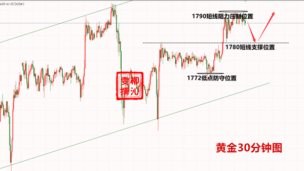 所以整体来看,黄金虽然是多头趋势,但目前高点不追多,前方有1790-1800,趋势支撑点在1780,不破顺势多,破位看震荡1772,这种行情要边做边看。