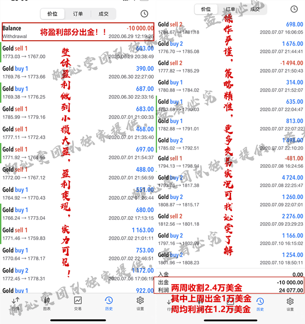 针对实盘提供一对一免费金油交易指导,包括实时单子进出场的提示,技术把控,资金仓位配比,风险控制等……有需要可以加入实盘指导。另外可以针对非实盘可以提供付费指导,收费根据资金量大小收取每单利润百分比,有需要可以具体了解。(具体收费标准,低于一万美金的收取25%-30%利润,高于一万美金的收取20%-25%,具体根据情况调整)