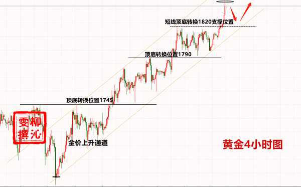 那么目前就是做个小区间,1840-1820的这个区间来处理。黄金如果一口气到1860上下,那么可以直接选择沽涳看跌向下运行。