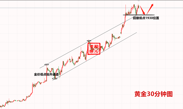 另外1小时周期MA20支撑均线不断上升,在没有破均线之前,可以一直理解为黄金一直在踩着均线上行,支撑线升高,金价也升高。黄金只要稍稍靠近该均线则必然有一波大的拉升。