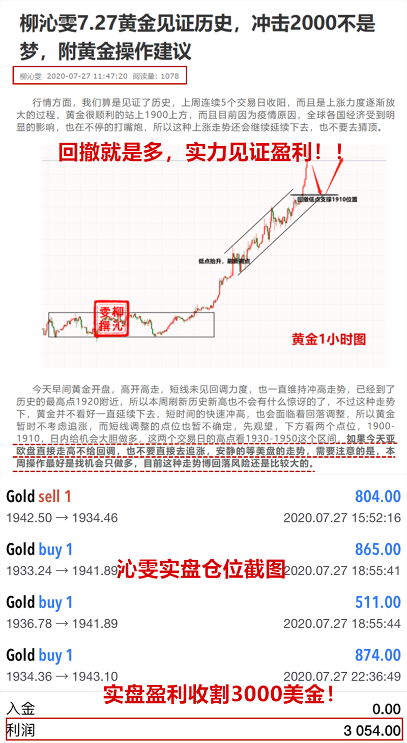 行情方面没有多大问题,盈利也跟上了,虽说今日第一单在1942的空单显得有点激进,但是沁雯交易进去就不后悔,事实证明,行情尽在掌握中。第二单在1933的反手多以及在36的二次多,都在1942利出;最后一单等待至晚间回撤至1933的多,刚刚到达1941今日高点出,交易的4单,收获接近20个点利润,收割3000美金。