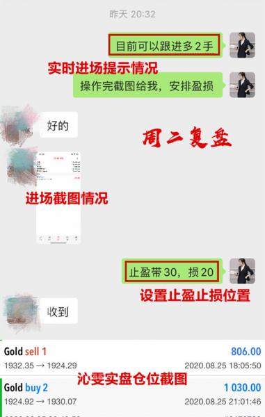 针对实盘提供一对一免费金油交易指导,包括实时单子进出场的提示,技术把控,资金仓位配比,风险控制等……有需要可以加入实盘指导。另外可以针对非实盘可以提供付费指导,收费根据资金量大小收取每单利润百分比,有需要可以具体了解。(具体收费标准,低于一万美金的收取25%-30%利润,高于一万美金的收取20%-25%,具体根据情况调整)