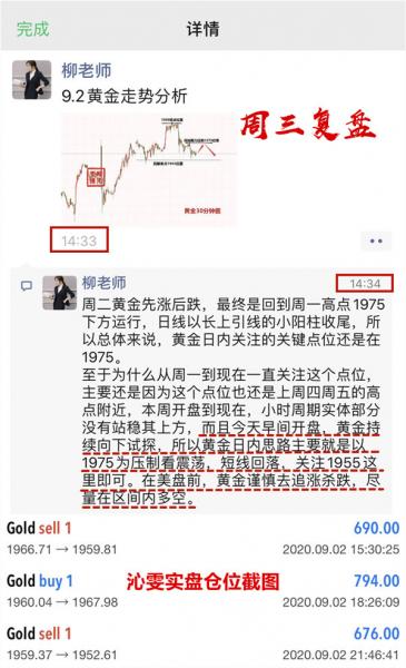 周三的交易依旧是思路之中,我们在午间先行给到了在1966附近的空单进场,午后在1959附近了结出局;欧盘时间反手在1960给到多单进场,最终得以了结在1967附近;而第三单就是金价晚间下跌,跌破午后支撑,顺势在1959布局空,晚间到达1952利出!