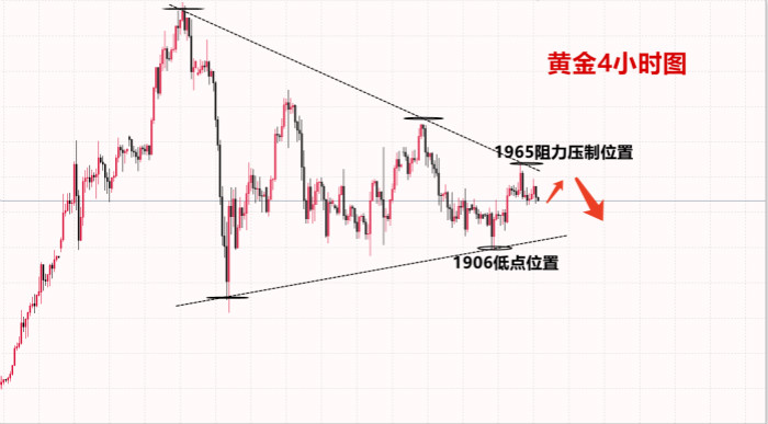 黄金在走4小时级别的区间震荡,这个区间震荡说的很清楚了,基本上本周开始的时候一直强调。走了一周的时间这个区间还没走完,周五的走势也是如此,黄金在周五的走势依旧是走震荡。