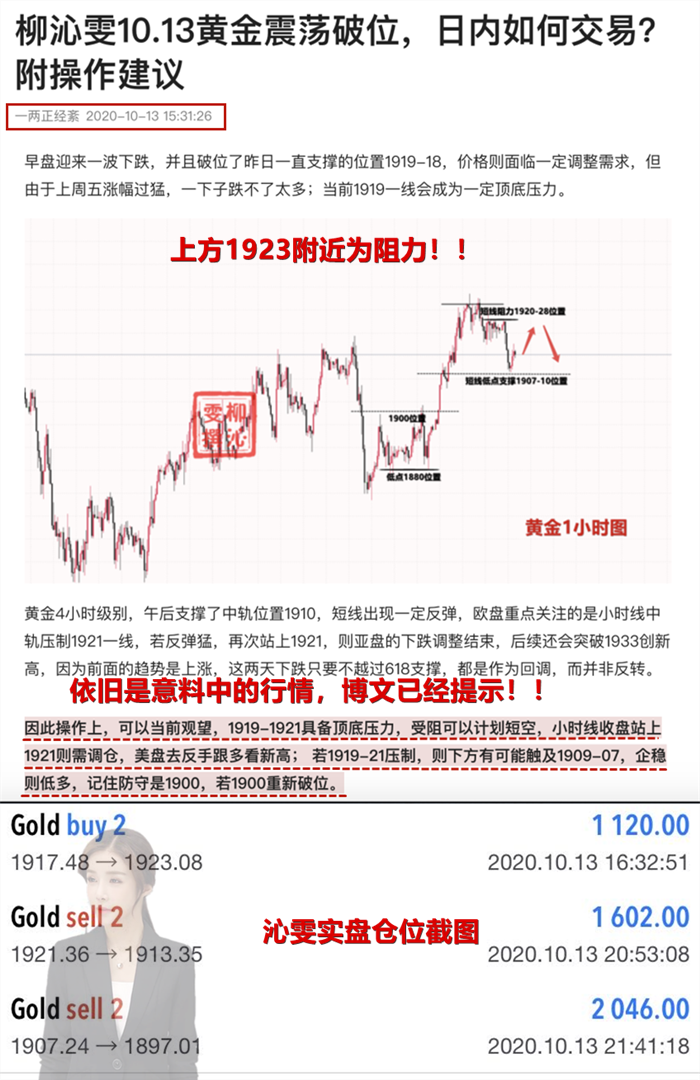 周二交易已经结束,一切尽在我们的掌握中。午间金价直接给到1917短多布局,午后到达1923附近成功利出!第二单毫不犹豫反手给到1921的空单布局,最终先在1913收割利润出局;最后一单就是金价再次跌破下方支撑,顺势给到1907二次空单,没有出预料的成功在1897利出!