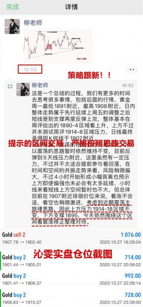 这是一个总结的过程,我们有更多的时间去思考很多事情,包括今日的行情,对于沁雯来说更多的熟悉的节奏,今日我们在博文中以及策略的跟新都有明确的讲道了区间的交易,不知道有没有仔细看呢?早间金价冲高二次触及1909位置受阻回落,顺势在1907给到空单的进场,最终在午后欧盘时间止盈于1902附近;第二单,金价下跌触及1896支撑一线开始反弹,待支撑稳定反手在1901给到了多单的布局,最终在晚间到达1906成功利出!交易的2单,成功收割9美金。对于盈利,说的太多太多,但是并不是空有其口在吹牛,而是实实在在的收割,不信,你可以试试。