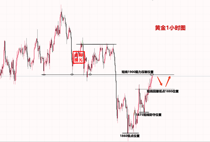 目前黄金上方短期压制在1893-94一线,关键压制在1897附近,金价自1900上方下探多次在1897附近止跌反弹, 晚间有可能会从1893-94附近直接开启回落,但1897就是晚间相对安全的做空点位。因为目前行情波动整体较小,因此一旦30分钟或者小时线以上出现明确的见顶信号也可再顺势去跟进空单。