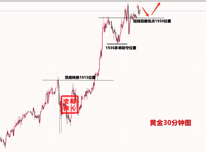 今日早盘起涨点位置在1950-1951位置,亚欧盘此位置不失守,突破1960问题不大。强支撑在周五尾盘回落的低点1942附近,若亚欧盘跌破1950起涨点位置,那么就看回落到此位置,到位后可以直接去参与多单。