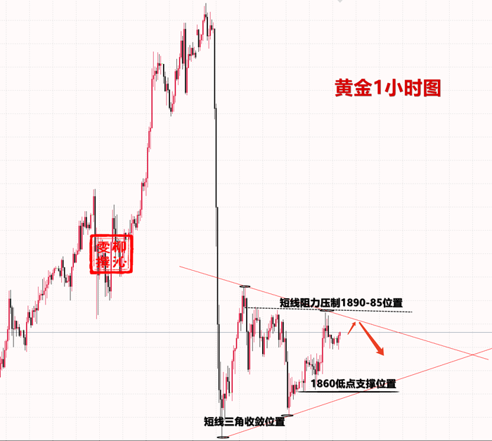 昨日在1881的空单持仓过夜单已经成功在1875附近自动止盈出,昨日交易不留遗憾了。关于行情,昨日黄金在虽上冲至1880上方,但未能成功站稳,目前维持着三角形区间震荡,以时间换空间,在这时间段通常是主力吸筹的方法之一,那么大家需耐心等耐区间突破和方向的抉择。