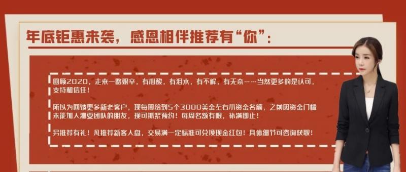 回顾2020,走来一路艰辛,有心酸,有泪水,有不解,有无奈……当然更多的是认可,支持和信任!所以为回馈更多新老客户,现每周给到5个3000美金左右小资金名额,之前因资金门槛未能加入沁雯团队的朋友,现可抓紧预约!每周名额有限,补满即止!