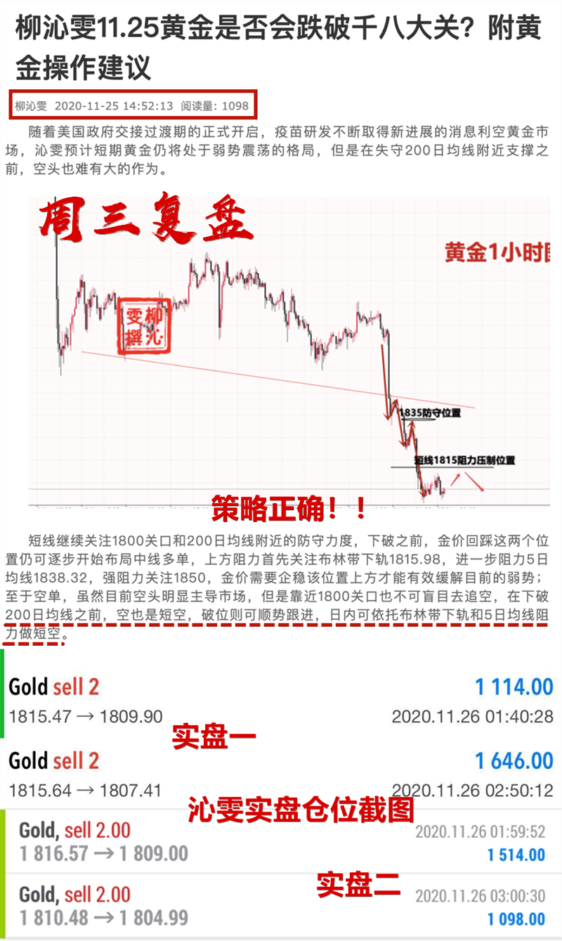 很久交易没有等这么久了,周三白盘一直等待进场的机会,晚间金价到达1815-17附近给到了进场的机会,但是比较可惜的是,下跌力度不足,我们等待的时间都比较的久,有些实盘因为第二天需要上班工作不适合熬夜太久,因此部分朋友设置了止盈止损之后就先行休息,而有的实盘朋友因为本身作息就比较的晚,跟沁雯等待到了交易的金价在1807附近的盈利出局!交易2单,收获12美金。
