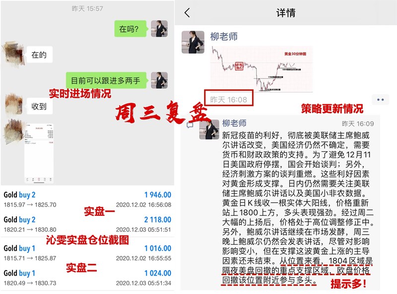 针对实盘提供一对一免费金油交易指导,包括实时单子进出场的提示,技术把控,资金仓位配比,风险控制等……有需要可以加入实盘指导。另外可以针对非实盘可以提供付费指导,收费根据资金量大小收取每单利润百分比,有需要可以具体了解。