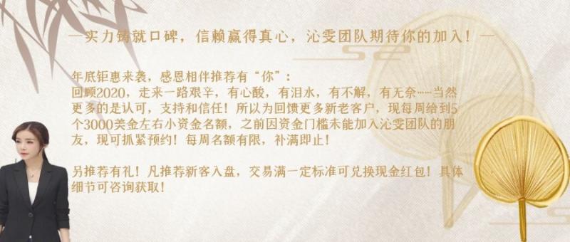 回顾2020,走来一路艰辛,有心酸,有泪水,有不解,有无奈……当然更多的是认可,支持和信任!所以为回馈更多新老客户,现每周给到5个3000美金左右小资金名额,之前因资金门槛未能加入沁雯团队的朋友,现可抓紧预约!每周名额有限,补满即止!