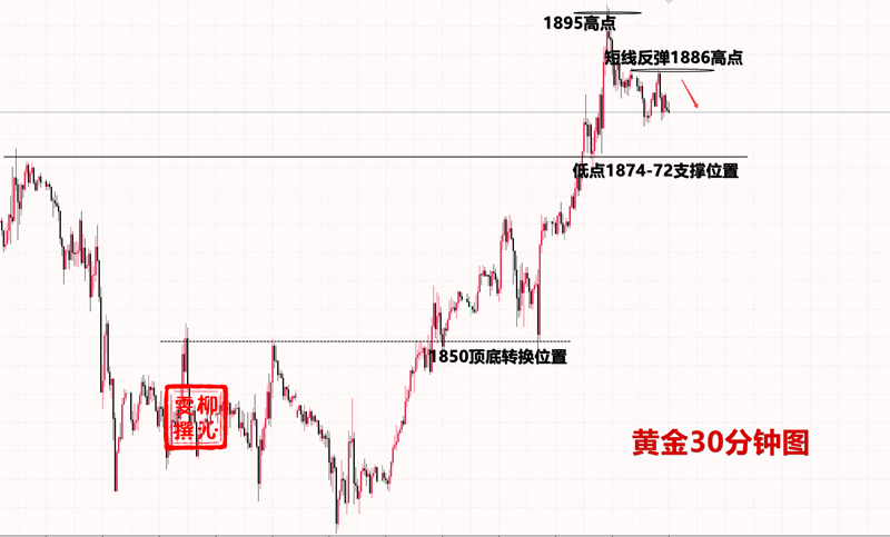 操作建议:黄金1886附近空,损5个点,目标1874-1870。