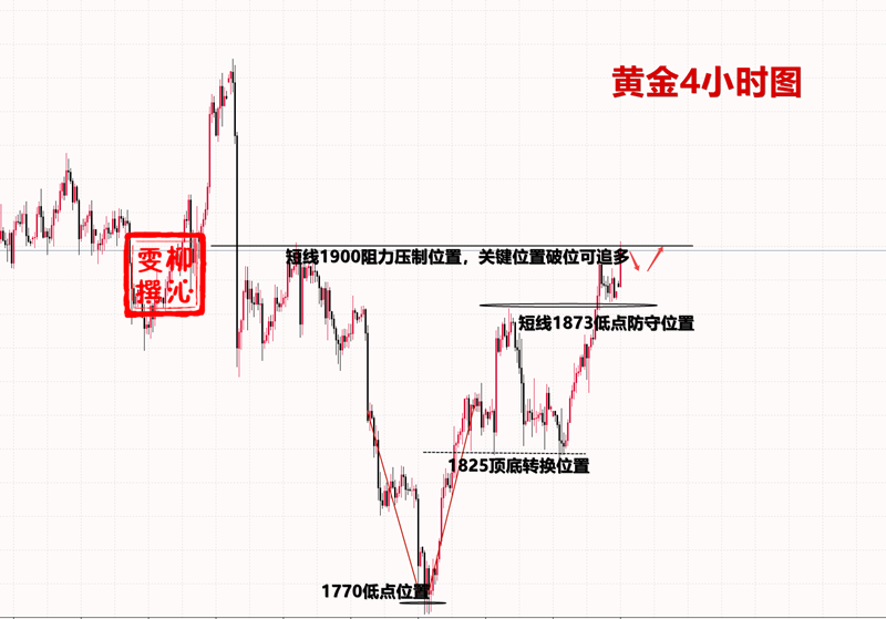 周末给大家的提示多,不知道有谁跟上节奏?上周黄金整体上涨,刷新高在1895,实现了周内大涨的空间,早盘黄金开盘直接上涨,再次刷新高点至1899附近,距离1900高点仅一步之遥。很明显周期内黄金继续看涨,而且暂时还没有高点可见,多头趋势不预测高点,周内继续看涨,交易也需要顺势做多,等待顶部形态出现再做高空的长线交易。