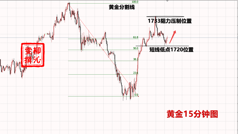 日线和四小时形态看涨不变,本周黄金将突破1740,挑战1760一线的空间需求!而上周五两个低点,首先是1680,其次是1700!那么本周的依托看涨的低点则是在1712-1715区域上方,短线形态斐波那契数列38.2支撑区域则是位于1721一线。午后给此位可加仓做多,防守在1712即可,继续看涨1735-1740!突破则看更高。