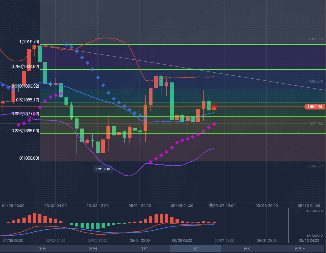 【黄金分析-美黄金】 周五非农如逾期,但是总体是偏向经济温和复苏,这无疑让美联储加息缩表提供支撑,黄金在1873区域多次横盘不破位,那么随时反弹再次下跌,所以欧美盘提示1873区域反复多,只有多头测试压力1890到1895区域,才能完成多空修复,果然昨日上演过山车行情,最终收盘1882区域但是依然没有收复1895关