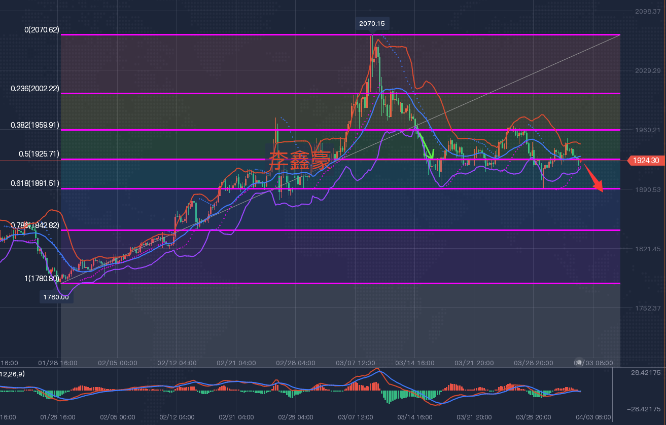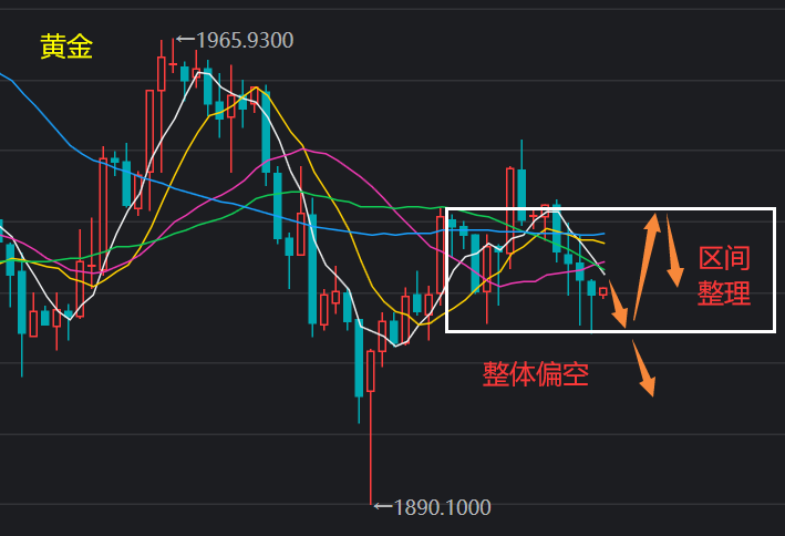 4月4日,上周黄金波动不是很大,全周先跌后涨再跌,形成大区间内震荡,虽然是数据周,但非农数据公布也并没有打开区间,最终在1923附近偏低收盘。既然上周非农数据的攻击下没有破位走出趋势,那么,本周黄金大概率还是震荡表现,做短线积累行情。 技术面上,上周五黄金日线收实体阴线,上涨最高点位在1949附近,k线一
