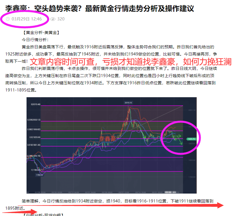 【黄金分析-美黄金】 今日行情分析: 首席专业黄金白银分析师李鑫豪,提供实盘交易指导,私人订制一套详细的交易计划和风险控制方案,实盘操作指导添加:BOLL500 黄金小时线级别,隔夜从1940弱势连跌打压至1917,针对凌晨后半夜跌的走势,第二日一般会有延续下行,早上先反弹就要择机空一次,由于