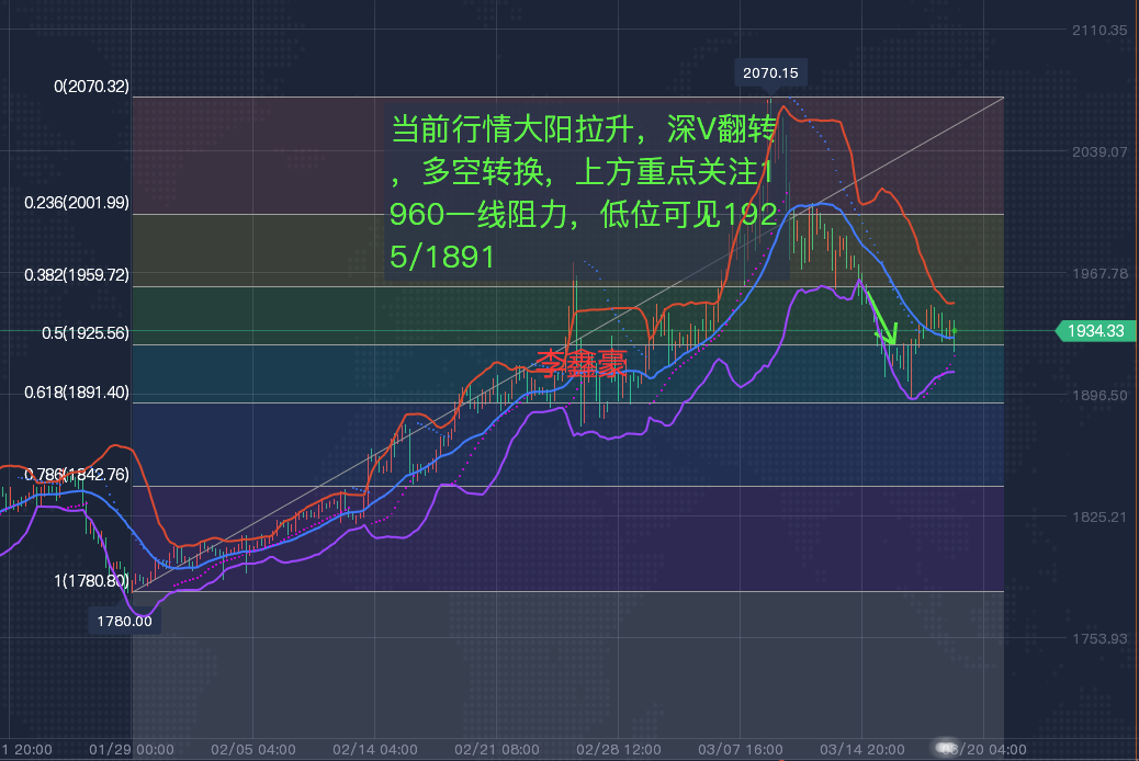 黄金走势分析: 周五(3月18日)亚市盘初,现货黄金震荡下跌,目前交投于1933.5附近。周四金价小幅反弹,受美元和美债收益率回落的支撑,市场对俄罗斯和乌克兰和平谈判的乐观预期降温,吸引逢低买盘重新入场,也给金价提供支撑,不过美国经济数据靓丽,令多头仍有所顾忌。 从技术面上看,黄金日线连阳,走