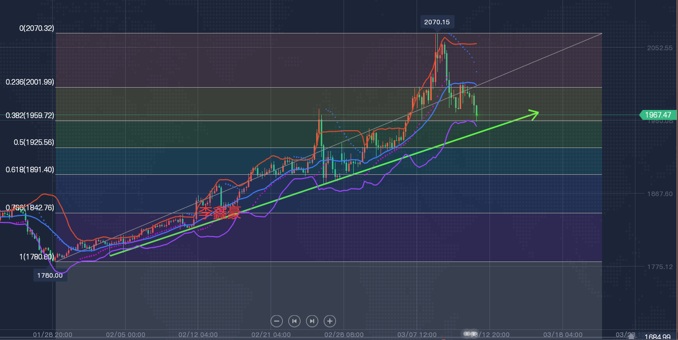 近期有哪些消息面影响黄金走势?黄金后市多空该如何研判? 周五美盘中,俄罗斯总统普京表示,与乌克兰的谈判出现了一些积极的转变。市场闻讯短线巨震。现货黄金短线急挫15美元,随后震荡走低,下破1970美元关口,日内跌超1.5%;现货白银也跟随下跌。黄金目前最低是下探至1960这里,截止到目前再度至1960反弹至1